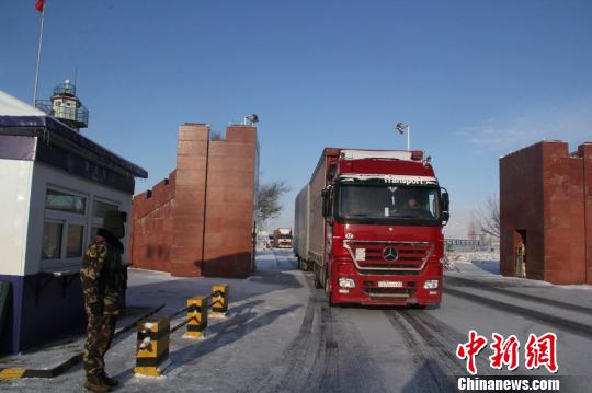 中國境內(nèi)的貨車在經(jīng)過查驗后漸漸駛出。